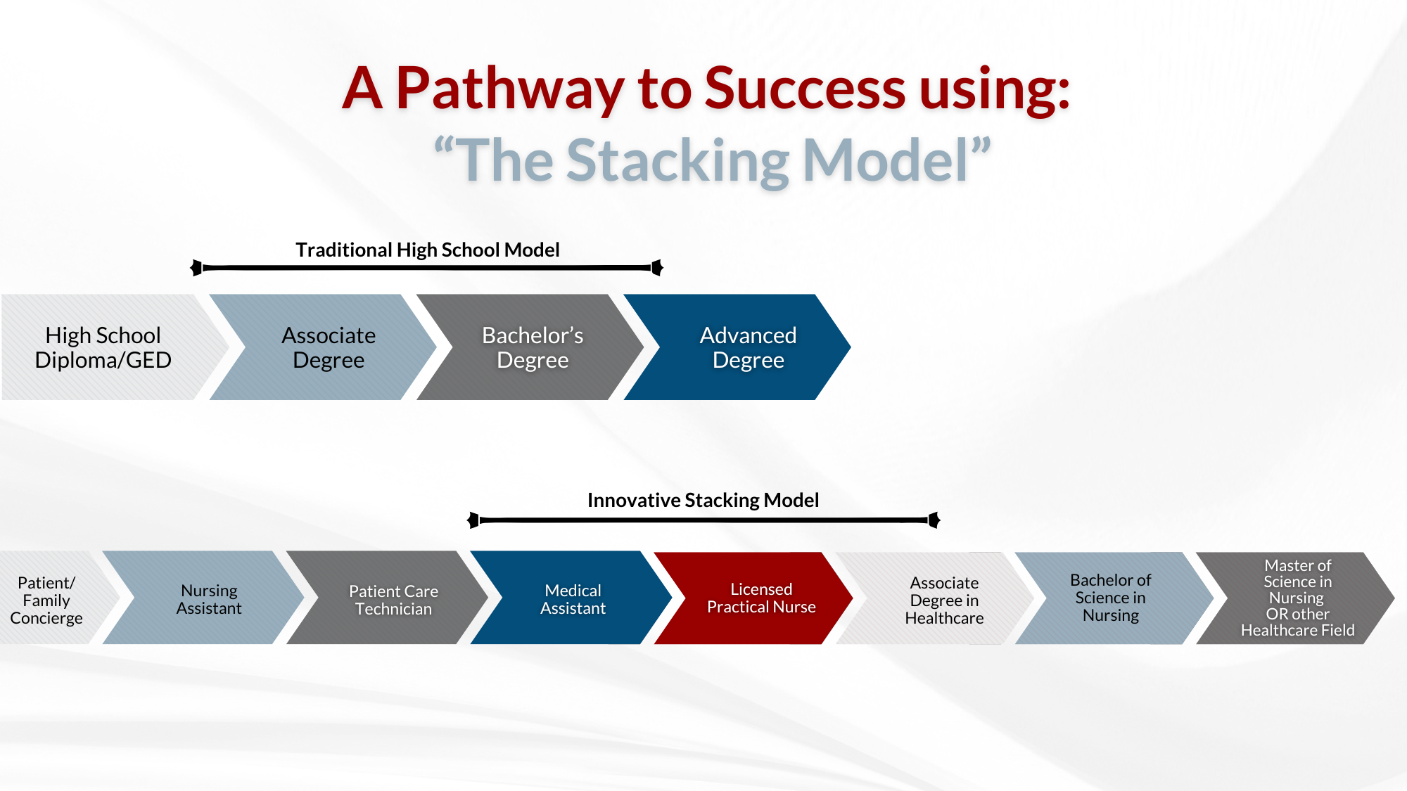 Our program follows a stackable credential model that allows students to earn college credit, prepare for national certification, and transition into healthcare careers or advanced nursing education. Our program allows PCT graduates to sit for the NCCT PCT exam which permits students to work as Level II PCTs. We partner with healthcare facilities to provide clinical experience and employment pathways. We offer two types of program cohorts - one for high school students and another for adult learners in the community. Inquire for more information!