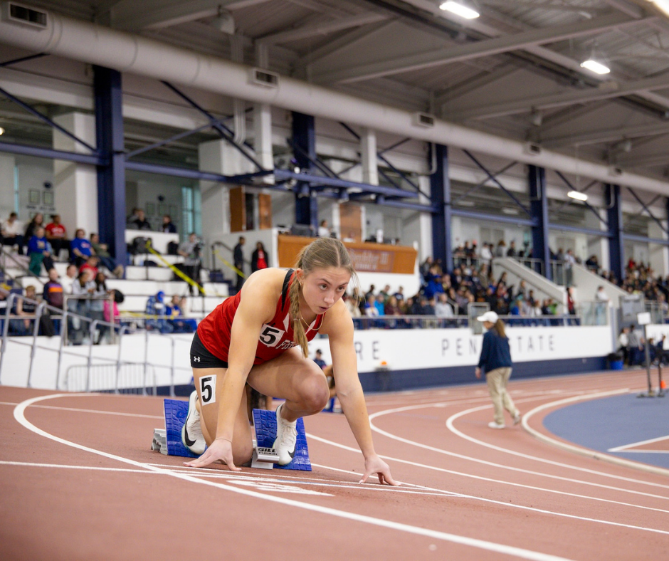 Olivia doesn’t just run fast — she lives fast. The sophomore owns the Saint Francis indoor records in both the 200-meter and 300-meter dash, breaking marks that had stood for more than a decade. At the IC4A/ECAC Indoor Championships, she ran 24.70 in the 200m to reset a 13-year-old Track & Field school record.