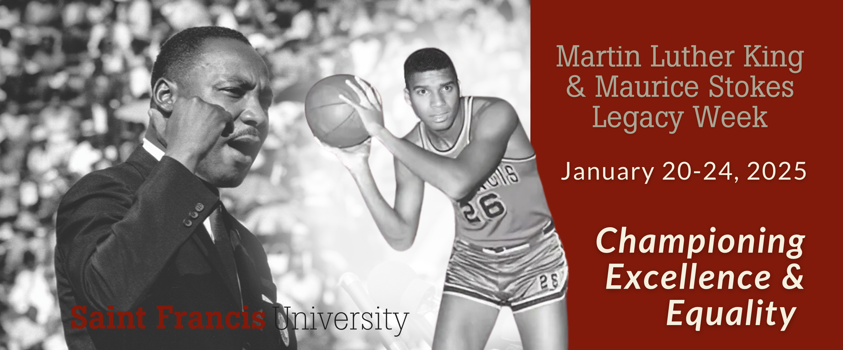 Loretto, PA – Saint Francis University proudly announces MLK and Stokes Legacy Week 2025, a weeklong celebration honoring the remarkable legacies of Dr. Martin Luther King Jr. and Maurice Stokes. From January 20-24, 2025, the campus will host events that reflect the values of justice, equality, and compassion, exemplified by Dr. King’s vision and Stokes’ inspiring journey.